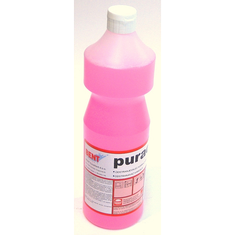 Tečno sredstvo za efikasno odstranjivanje tvrdokornih naslaga kamenca i ostataka kalijumovog sapuna. Dobro čisti i ostale nečistoće i masnoće. Ne uzrokuje korozivna isparenja. Sadržajne sirovine su biološki razgradljive. Puracidom očišćene površine i predmeti su higijenski čisti.